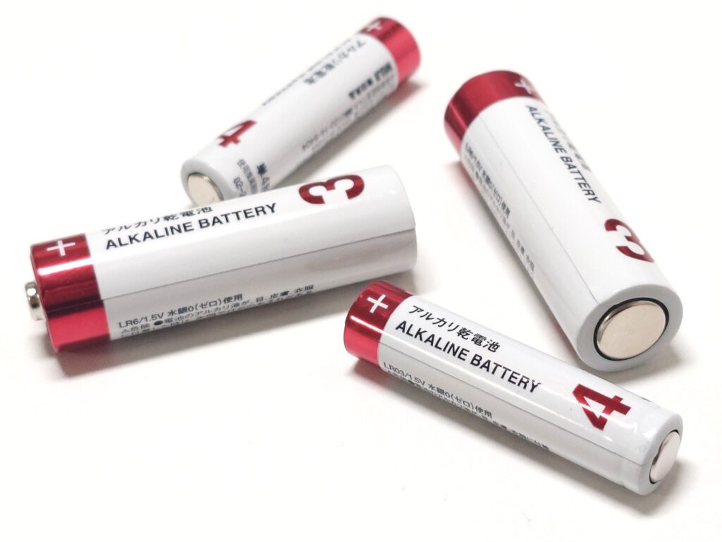 電池の交換頻度が数ヶ月単位の場合や災害時の持ち出しに使うなど備蓄目的である場合は、自然放電量の多い充電池ではなくアルカリ電池が最適。