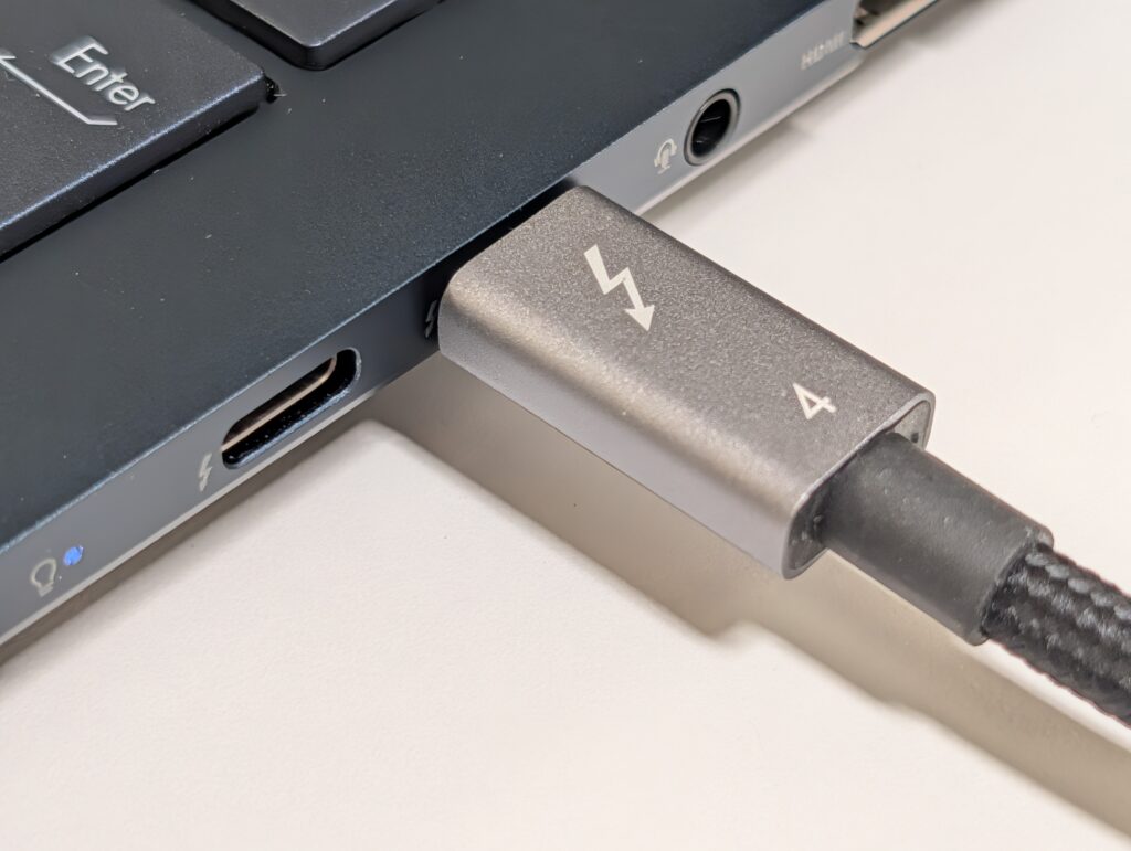 一方でThunderbolt 4ケーブルは40Gbpsの転送速度を持ちながら最大で2mまで対応している。さらに最大100Wの電力供給を保証していて、USB PD3.1 EPRに対応したモデルでは最大240Wが可能。非の打ち所がない。