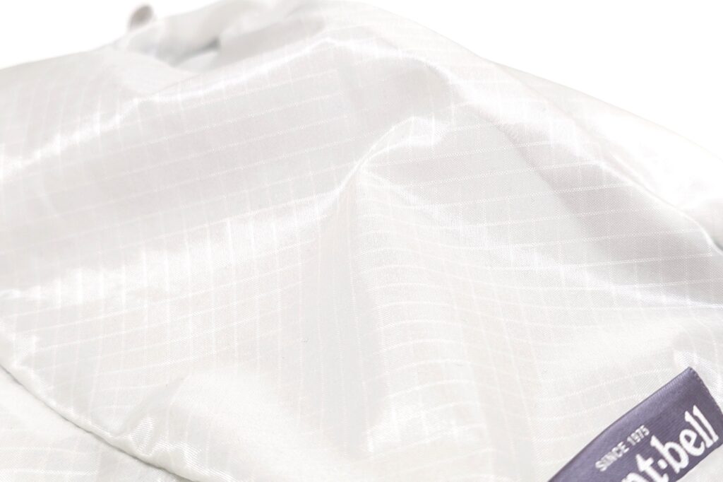 呪文のような名前の長さだが超軽量ながら優れた引き裂き強度を持ち、30デニールという薄手のナイロンにシリコンコーティングを施したモンベルオリジナルのファブリックとなっている。