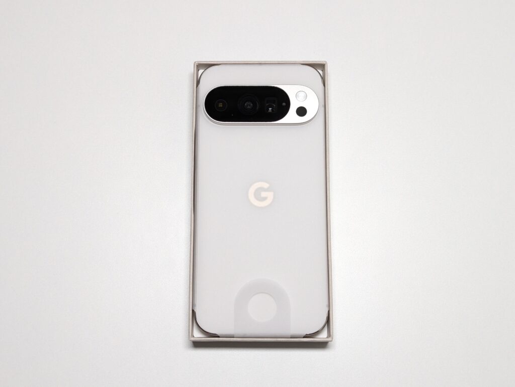 上蓋を開けると紙の本体保護フィルムにくるまれたPixel 10 Proとご対面。