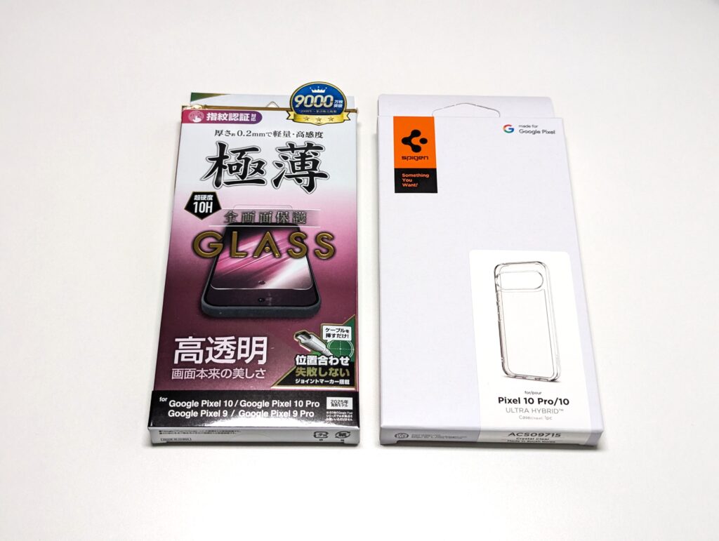 Pixel 10 Proはメインスマホとして使用する予定なので、万全を期して保護フィルムとケースを購入。