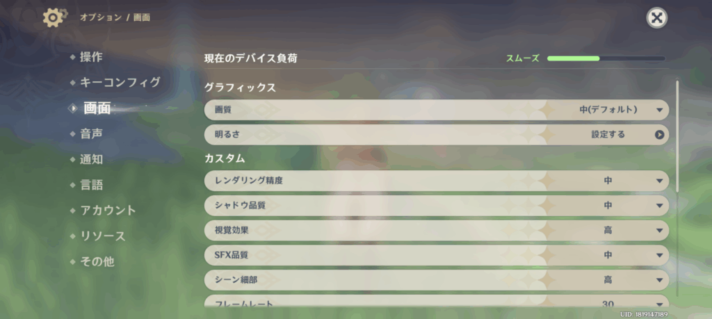 実際に人気重量級タイトルの原神をプレイしてみたところ、デフォルトでのグラフィック設定は「中」となっており、「最高」かつ60fpsにしてプレイすると次第にラグやカクつきがみられた。