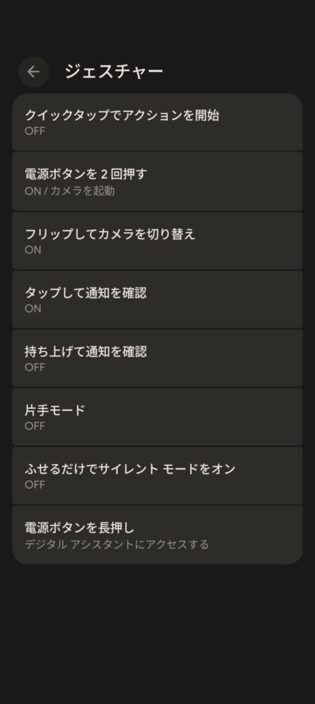 Pixel 10 Proはジェスチャー設定の項目が豊富でうれしい。もちろん基本的な動作はしっかり抑えてるし今のところ変な挙動とかバグは無い。